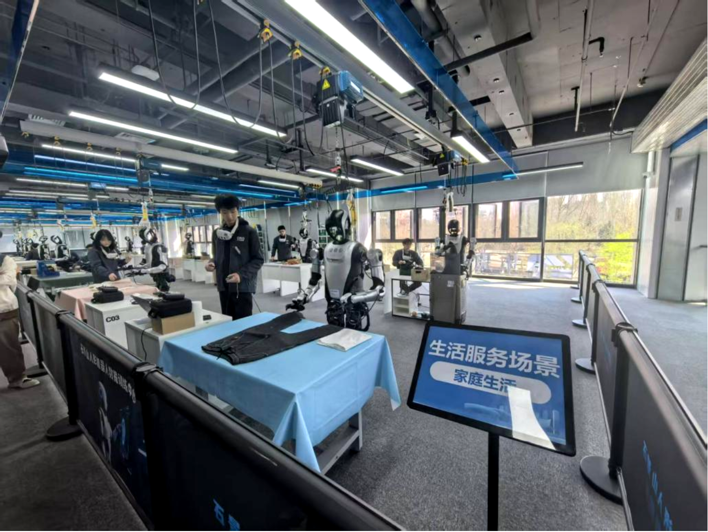 在参观环节,教师们现场观摩了机器人执行洗碗、擦桌子、叠衣服等精细化家务操作,以及收发快递等动态任务流程,近距离感受具身智能技术在真实场景中的感知、决策与执行能力。企业方还结合丰富的落地案例,介绍了人形机器人在多元场景中的实际应用:从深圳市民中心的Citywalk,到南方电网的电力巡检的导览讲解,再到亮相亚冬会火炬传递、乒乓球亚洲杯开幕式及全国两会报道等大型活动,其人形机器人已广泛服务于工业巡检、商业服务、公共活动等多个领域。这些应用场景充分展示了企业从技术研发到场景落地的端到端能力,以及人形机器人在复杂环境下的适应性。