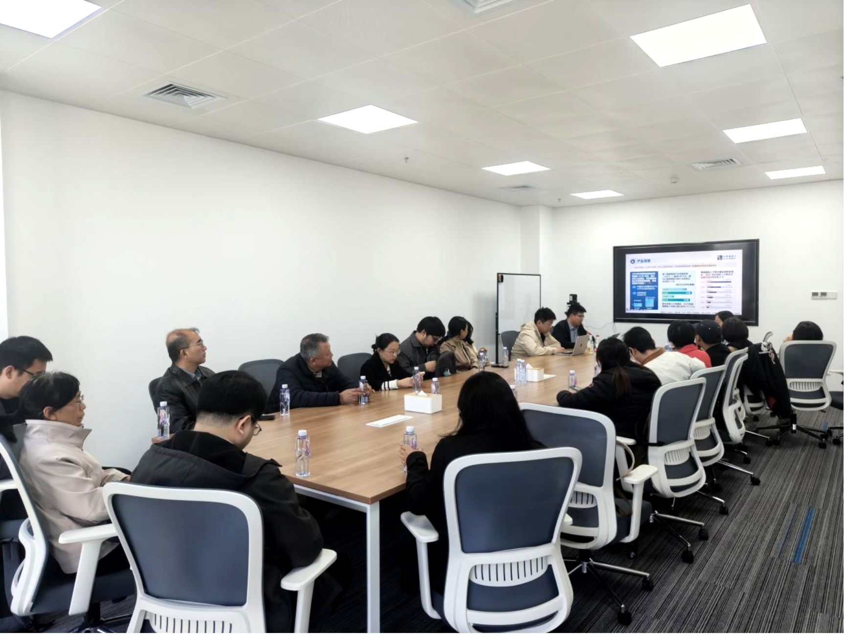 在交流环节,企业方专题介绍了与高校合作联合开发具身智能课程体系、共建实训平台等方面的探索与实践。双方围绕具身智能人才培养方案、实习实训基地建设、科研项目协同攻关以及人才供需对接等议题展开热烈讨论。企业方表示,乐聚已与清华大学、北京理工大学、哈尔滨工业大学等高校开展教育部产学合作协同育人项目,形成了从课程建设、团队培训到赛事组织的完整人才培养支撑体系。双方就推动教育链、人才链与产业链深度对接达成多项共识。